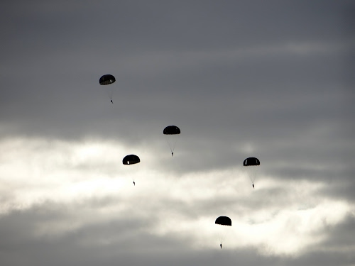 Paracadutisti ripresi da Mont Saint Michel - Francia.