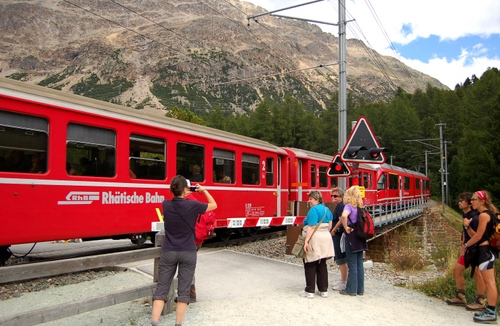 Foto dell'autore Kris candidata al contest fotografico treni su Dizy. Data inserimento: martedì 15 luglio 2014. Titolo: passaggio del trenino rosso a Morteratsch
