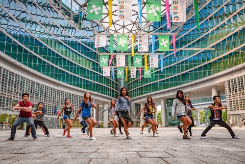 Altri tag (senza riscontro): tanti, rosso, regionale, vestiti, bianco, corte, piastrelle, moderno, giovani, bandierine, pavimento, onde, mosse, danzare, colore, movimento, appesi, padiglione, azzurro, manifestazione, vetri, ballare, esposizione, grattacielo, fiera, persone.
