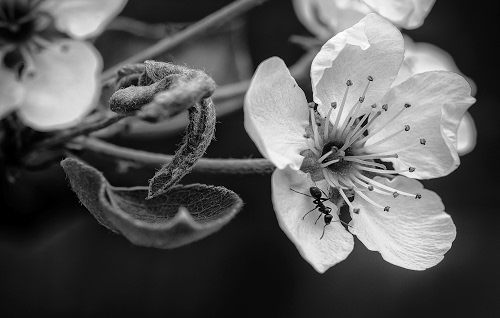 Grazie per il complimento! Ho provato a colori ma la preferivo in b/n anche per non mettere tutte e 10 foto a colori. Mi piaceva il contrasto tra i petali bianchi e la formica nera. ![]() |