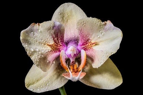 Tag: orchidea, fiore, petali, bianco, gocce, nero, viola, pistilli, pistillo, acqua, macro, natura, corolla, rosa.