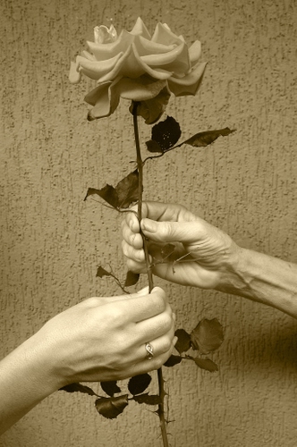 Molto bella e romantica e il color seppia che sa di antico è come dire che certi gesti simbolici sono spariti. Un grazie per l'emozione provata. |