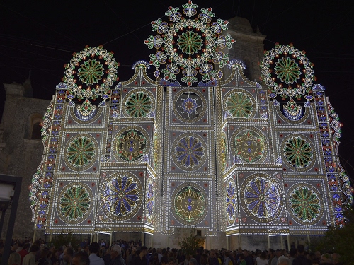 Altri tag (senza riscontro): piante, luminaria, rosone, disegni, struttura, piazza, stelle, rettangoli, grigio, palazzo, lampadine, gente, multicolori, luccichio, azzurro, giallo, folla, illuminazione, blu, quadrato, geometrie, edificio.