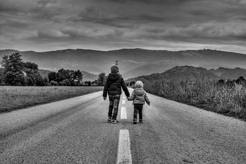 La delicatezza dell'accompagnamento di due bambini, verso un futuro ignoto. Scatto di qualche anno fa. Il cammino continua ancora!