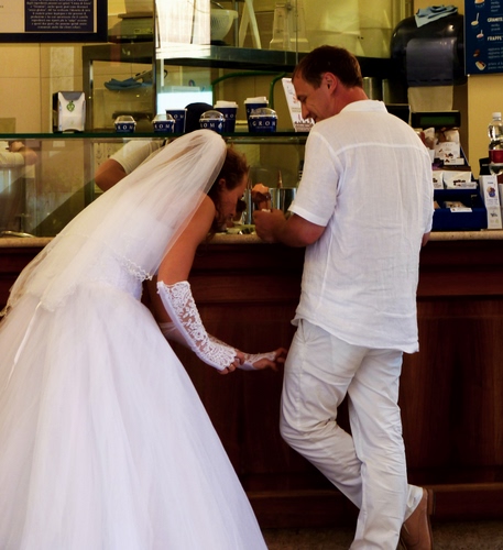 Foto dell'autore Justinawind candidata al contest fotografico bianco su Dizy. Data inserimento: mercoledì 10 settembre 2014. Titolo: Sposi in gelateria