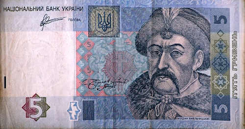 Banconota da 5 hryven' che ritrae Bohdan Chmel'nyc'ky