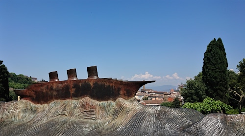 Opera di Folon al giardino delle rose di Firenze
