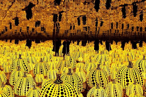 "Infinity Mirrored room"(2016). Installazione dell'artista giapponese Yayoi Kusama, dove lo spazio è ripetuto all’infinito in un caotico gioco di specchi.
