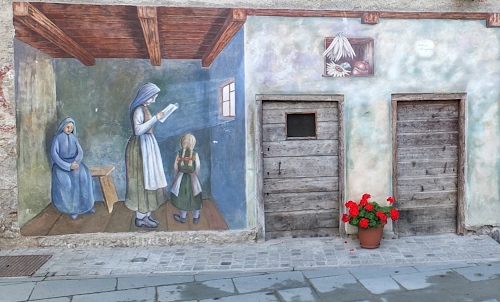 Altri tag (senza riscontro): marciapiede, marciapiedi, affreschi, gerani, soglia, trecce, contadina, assi, battente, finestre, volta, graffito, velo, eretta, leggere, verde, suore, semplice, legge, muro, vita, ingresso, soffitto, uscita, porta, panca, portone, entrata, mattonelle, portoni, celeste, apertura, basolato, pittura.