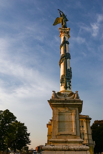"Il monumento alla Vittoria di viale Paolo Toschi, costituita da una colonna in marmo sormontata da una figura femminile alata in bronzo" |