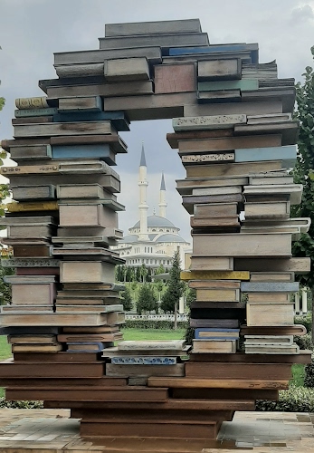 La scultura rappresentante una libreria posta di fronte alla moschea di Ankara