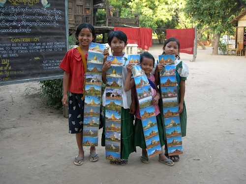Ragazzine birmane vendono cartoline ai turisti