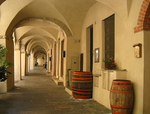 Tag: botti, portico, archi, prospettiva, portici, colonne, finestra, rosso, volte.
