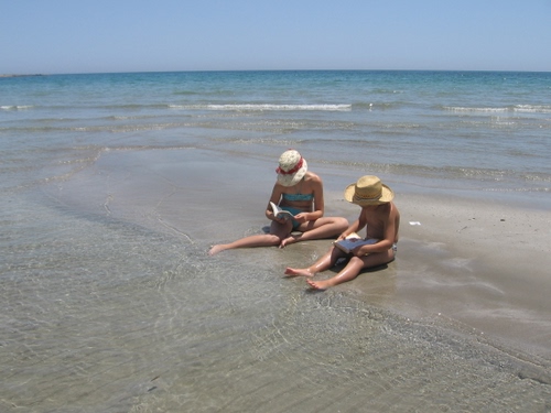 Eh sì, sono i miei figli che si erano messi a leggere su una secca vicino a riva all'Oasi di Vendicari, stupenda.