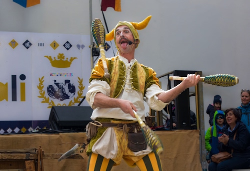 Foto dell'autore Diana Cocco candidata al contest fotografico giocolieri su Dizy. Data inserimento: mercoledì 29 ottobre 2025. Titolo: Giocolieri a Brindisi Montagna - Acrobati del Borgo