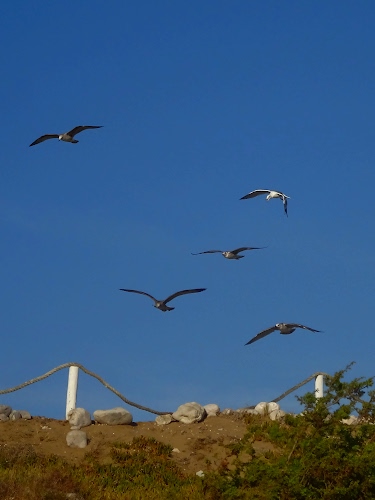 Cinque gabbiani in volo