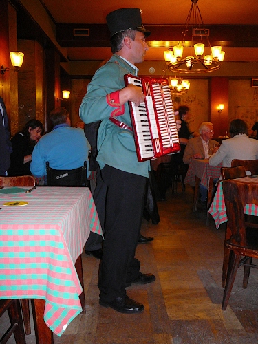 Un fisarmonicista è un musicista che suona la fisarmonica e può esibirsi nei ristoranti.