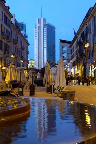 Foto dell'autore Paola S candidata al contest fotografico grattacielo su Dizy. Data inserimento: martedì 21 ottobre 2014. Titolo: Scorcio da Corso Como al crepuscolo