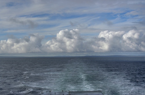 intravvedere l'orizzonte tra mare e nuvole