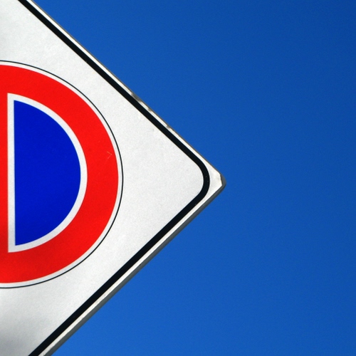 Tag: segnale, rosso, blu, bianco, azzurro, cielo, cartello, divieto, stradale, minimalismo, triangolo.