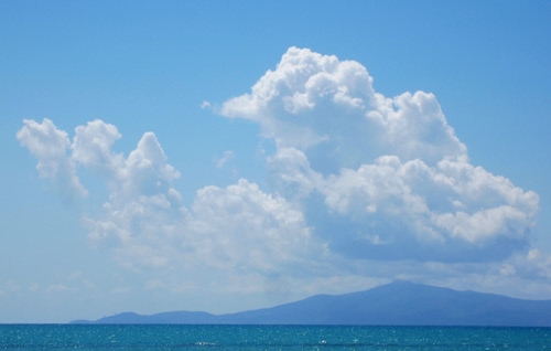 Nebbie e nuvole sul mare