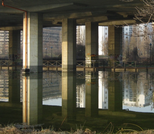 Piloni a sostegno di un tratto della Tangenziale Est, all'estrema periferia orientale di Milano.