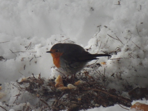 Un pettirosso apprezza le briciole offerte!