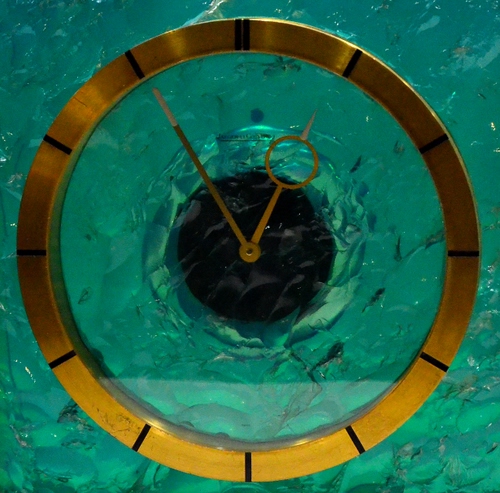 Ju, ho semplicemente fotografato questo orologio da tavolo o da parete, in una vetrina di Riccione. Unico accorgimento, per renderlo più misterioso, è stato il taglio dei bordi del quadrante che sinceramente non so in che materiale sia, di cristallo o di resina? Aggiungo che si tratta di un Jaeger-LeCoultre Epoca. Colgo l'occasione per augurarti un felice 2015.