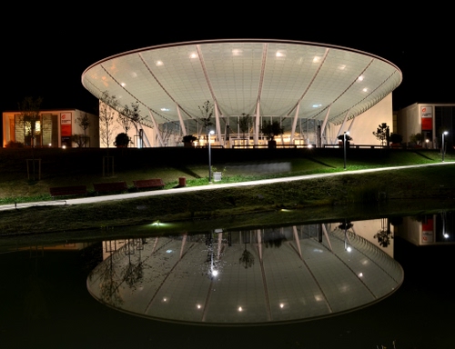 Altri tag (senza riscontro): fiume, rotonda, palazzetto, costruzione, sera, struttura, rotondo, tettoia, lago, cupola, stadio, alberi, notturno, bianco.