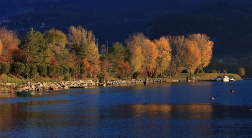 Tag: alberi, acqua, lago, autunno, fiume, barche, riva, sassi, riflessi.
