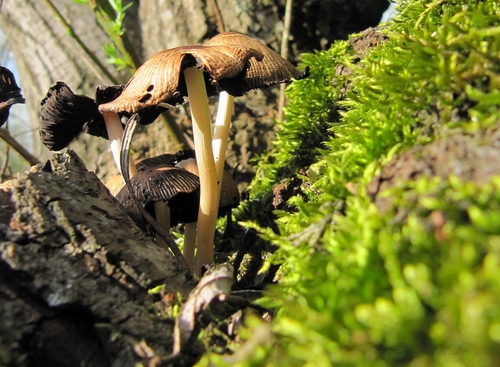 Tag: funghi, verde, erba, tronco, fungo, gambo, legno, muschio, marrone.