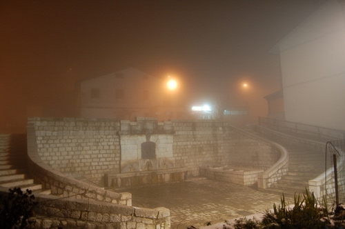 nebbia che cala sulla fontana