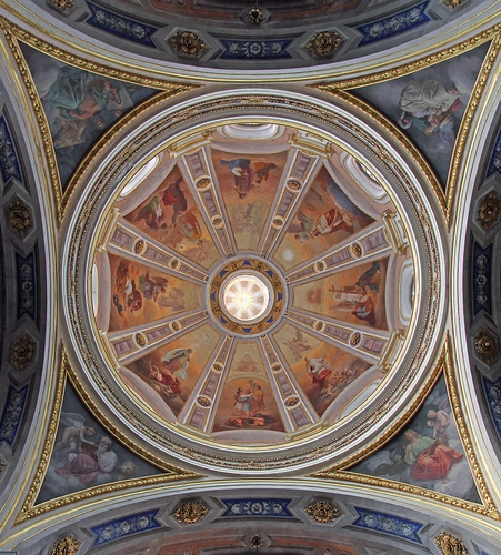 Tag: cupola, affreschi, chiesa, cerchio, geometrie, soffitto, dipinti, interno, cappella, blu.