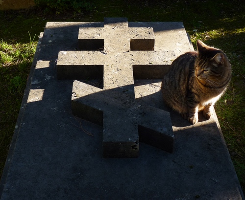 La croce de Lorraine è simile a questa, che si chiama croce ortodossa o croce russa - entrambe sono croci patriarcali, e si differenziano dalla barra poggiapiedi qui presente. L'ho fatta nel mio cimitero preferito, Acatolico a Roma, a Piramide, dove ci sono le tombe dei protestanti e ortodossi - lo stesso cimitero dell'Angelo del Dolore, quello del contest Volare, per Silvia. A Piramide c'è anche una bella colonia felina ed è facile avere dei modelli pelosi per le foto. Nel caso dovessi venire a Roma, ti consiglio la visita e mi offro come guida, è un posto che merita. |