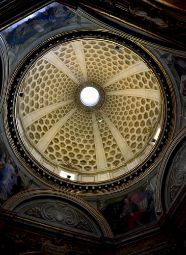 Tag: cupola, chiesa, affreschi, interno, soffitto, cerchio, decorazioni, disegni, dipinti, luce.