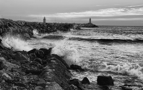 Tag: mare, scogli, bianconero, onde, faro, fari, acqua.