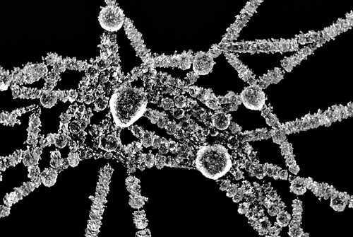 particolare di una ragnatela ghiacciata