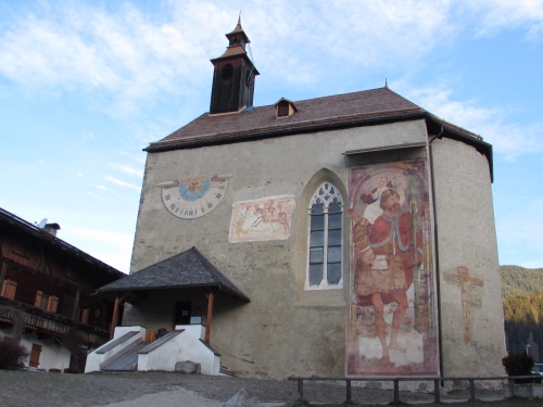abbiamo la stessa meridiana di Tesido in Val Casies - posto meraviglioso, vero? Non vedo l'ora di tornarci forse, un po' troppo panoramica? per il contest mediane? però la chiesa antica è così bella .... |