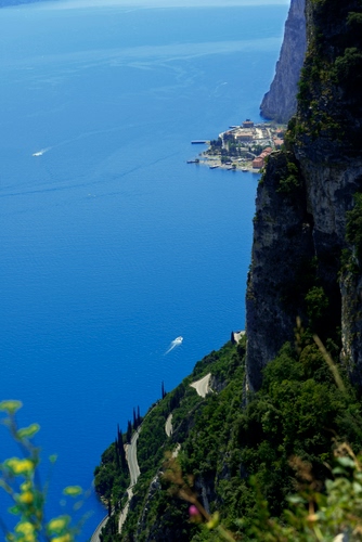lago di garda la litoranea e la strada che sale sull'altopiano di tremosine sullo sfondo frazione di campione del garda
