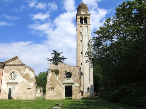 Monastier (TV): Ruderi Chiesa Benedettina bombardata dagli austriaci nella 1^guerra mondiale, adiacente abbazia con chiostro.