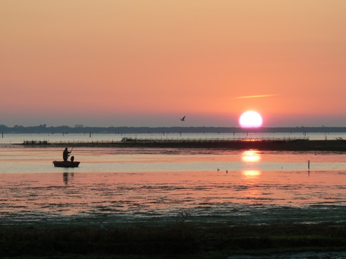 Tag: barca, tramonto, sole, pescatore, acqua, controluce, cielo, mare, riflessi, riflesso, uccelli, rosa, laguna, alba, uccello, silhouette.