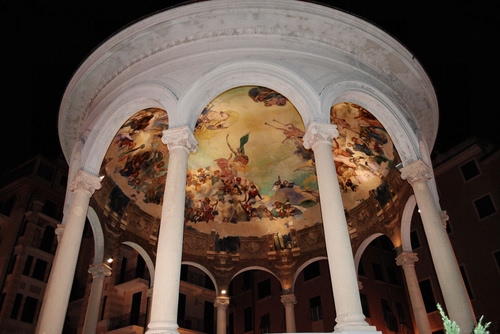 Tag: colonne, archi, dipinto, affresco, soffitto, bianco, notte, cupola, notturno.