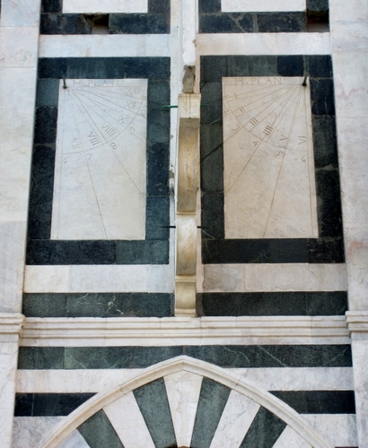 Firenze, Santa Maria Novella la una facciata "astronomica", il quadrante astronomico del frate domenicano Ignazio Danti, cosmografo alla corte di Cosimo I de' Medici.