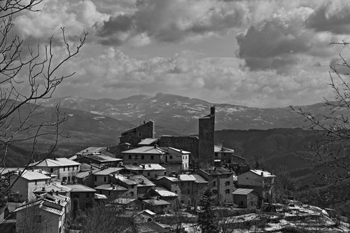 Piccolo borgo casentinese innevato