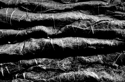 molto suggestiva, condivido la scelta del frame 3:2 che segue le scanalature della roccia. ci trovo un unico punto di debolezza: le ombre troppo chiuse, nere, senza dettaglio. scelta autoriale? |