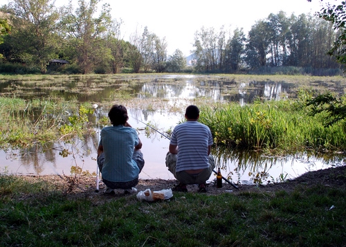 Tag: due, lago, pescare, alberi, pescatori, acqua, persone, verde, piante.