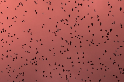 La silhouette di questi storni contro il cielo al tramonto mi ha fatto sognare....