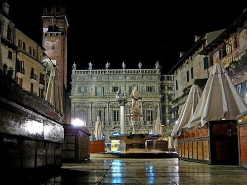Grazie, sono i banchi del mercato di piazza delle Erbe, a Verona. |