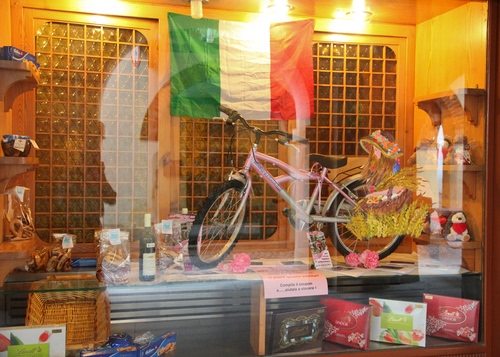 Foto dell'autore joiedevivre candidata al contest fotografico bicicletta su Dizy. Data inserimento: lunedì 10 febbraio 2014. Titolo: Bicinvetrina - Agliè