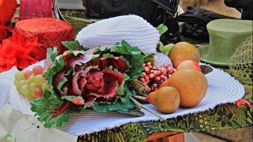 Cappello con frutta e verdura